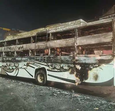 जयपुर में रविवार (13 अक्टूबर) रात चलती प्राइवेट बस में आग लग गई। बस में सवार 25 यात्रियों ने किसी तरह अपनी जान बचाई। चलती
