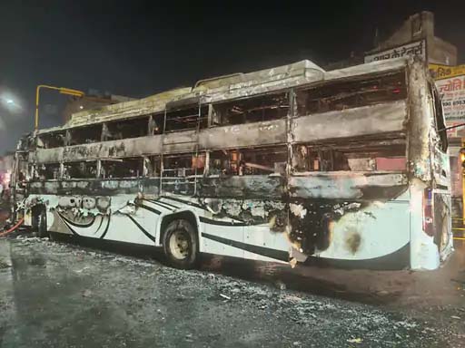 देखते ही देखते लपटों में घिरी बस देर रात सड़क के बीचों बीच खड़ी बस में आग देख उधर से गुजरने वाले लोग सहम गए। कुछ लोग दूर से वीडियो बनाने लगे। कुछ ही देर में बस को आग की लपटों ने घेर लिया।